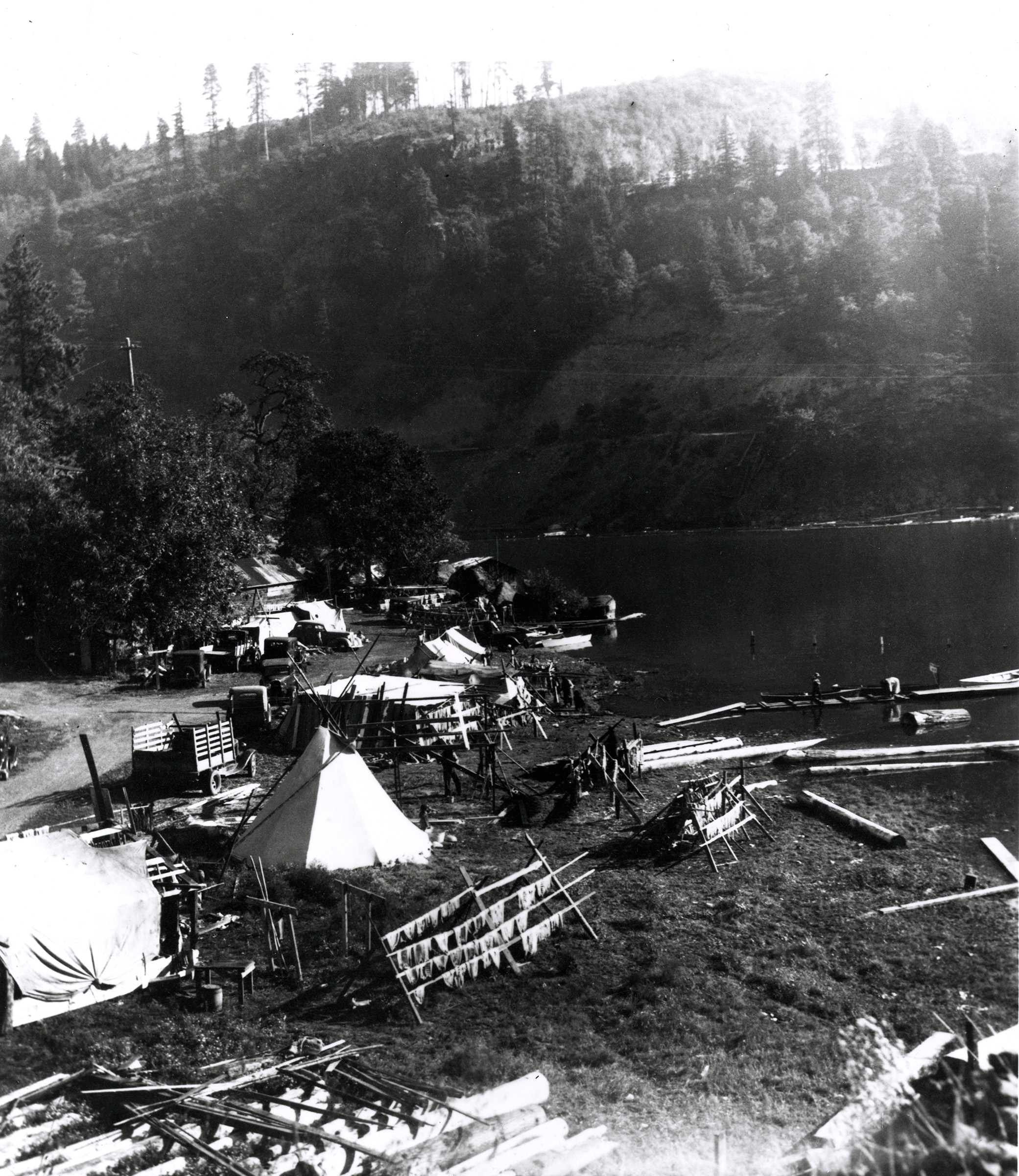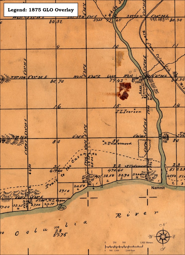 Andoniram (Amos) Judson Underwood was an early pioneer who came west on the Oregon Trail in 1852, along with his younger brother Edward Underwood. Amos Underwood moved to Cascade Locks and then to present-day Hood River, Oregon before claiming land on the north side of the Columbia River in Skamania County. The two Underwood brothers began purchasing and clearing land up on the fertile bluffs above the river where the town of Underwood would take hold. The brothers also owned land at the confluence of the Columbia and White Salmon rivers at the location of Namnit, a significant Native American Village reported by Edward Curtis in 1911 and shown in photographs gathered for this project.