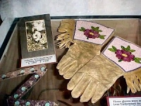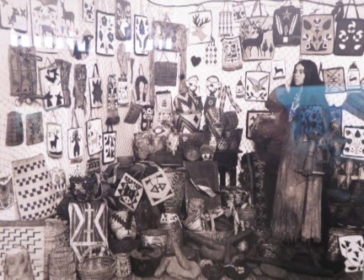 The two brothers were very proud of their wives’ artistic talents, especially their beautiful woven baskets and clothes decorated with intricate beadwork. In the late 1800s, the Underwood’s held an “Indian Fair” for neighbors and friends attracting people from the surrounding areas including Hood River and Cascade Locks, Oregon. The fair took place at the Underwood log house where Amos and Ed made racks to display Isabelle and Ellen’s finest work including baskets, beaded purses, dresses, necklaces, and other jewelry were all displayed. Fine basketry and beadwork made by Ellen’s mother, Martha, were also part of the display. The exhibit was accompanied by a picnic lunch prepared by the Underwood women. The Indian Fair became a tradition held every year into the early 1900s. Several photos of the fair, and Ellen’s craft are shown.